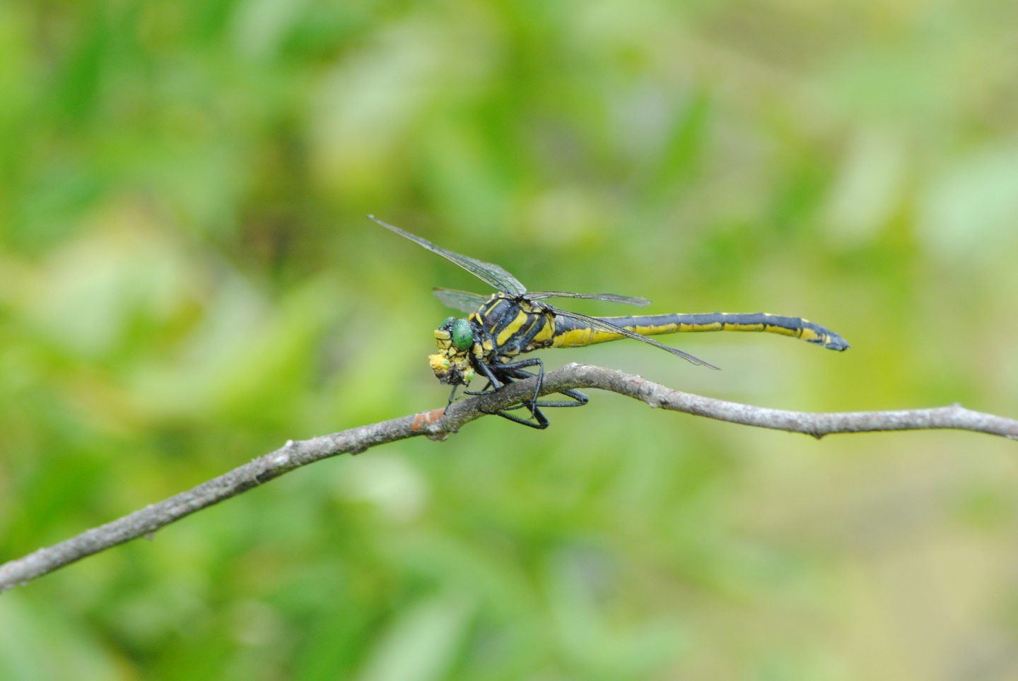 Dragonhunters are typically found along rivers in the eastern United States and southeastern Canada, where they hunt their prey from perches or during short flights [1, 5]. Peculiarly, they tend to approach their prey from above, whereas most other dragonflies grab their prey from below [3]. It is not completely clear why they differ in this way, but one possible reason has to do with how high their prey is often found. Damselflies in particular, which dragonhunters eat just as often as dragonflies, tend to perch on lower vegetation than their dragonfly cousins.