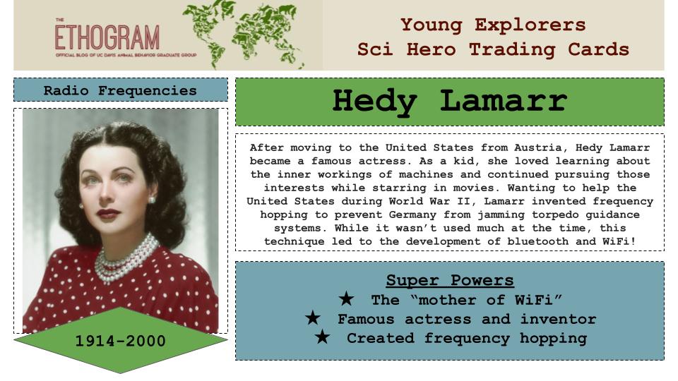 Check out The Ethogram’s Science Heroes column for more information about Hedy Lamarr!