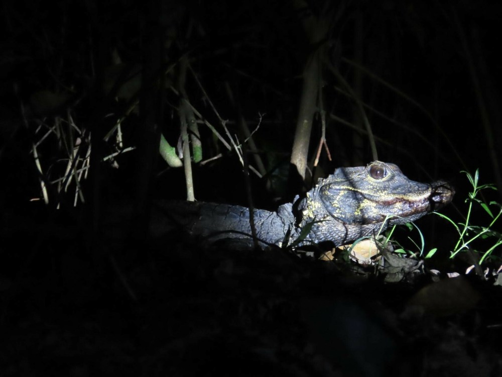 Dwarf crocodiles are relatively abundant throughout the swamps and moist forests of western to central African rainforests. However, they are listed as vulnerable by the IUCN and a major target of bushmeat hunting. This has historically been driven by subsistence hunting at the local level [3]. However, the pressure put on tropical wildlife populations, including dwarf crocodiles, is likely reaching unsustainable levels due to increasing transitions to urbanization, a growing demand for bushmeat internationally (News article – warning: slightly graphic photo), and habitat loss and climate change. As alluded to above, there is a lack of biological and ecological information about African dwarf crocodiles, and more research into their basic ecology and behavior is critical to developing effective conservation mitigation plans [3].