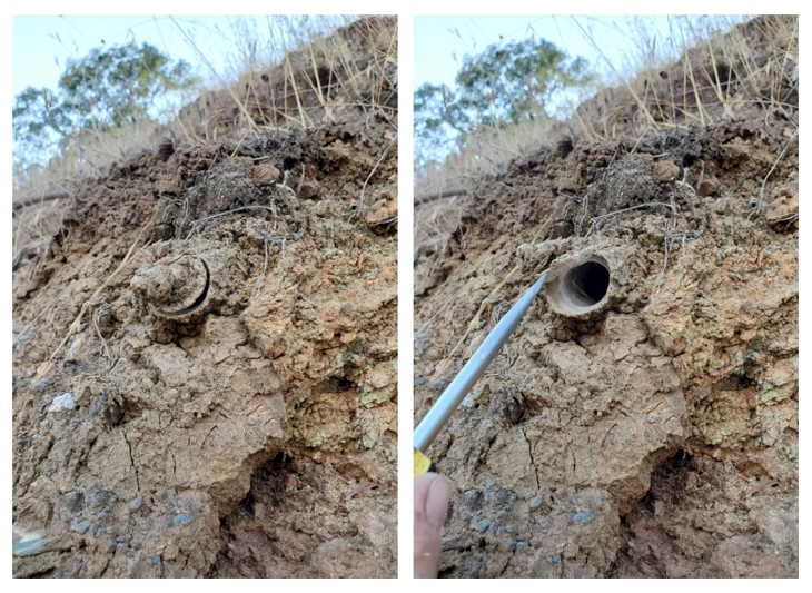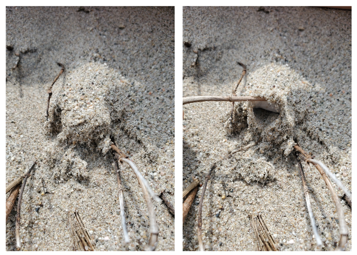 To build a burrow, a trapdoor spider begins excavating soil to create a hole, which it then lines with silk. This silk helps stabilize the burrow structure, as well as maintains humidity and regulates temperature. To construct the entrance, the spider carries soil from the bottom of the burrow to the rim and presses it down to make a circular opening. Finally, the spider continues this process of soil compression and silk application at the entrance, but working mostly at the anterior edge of the opening. The addition of soil to only one side of the entrance creates a hinge, and the soil flap becomes the trapdoor [3]!