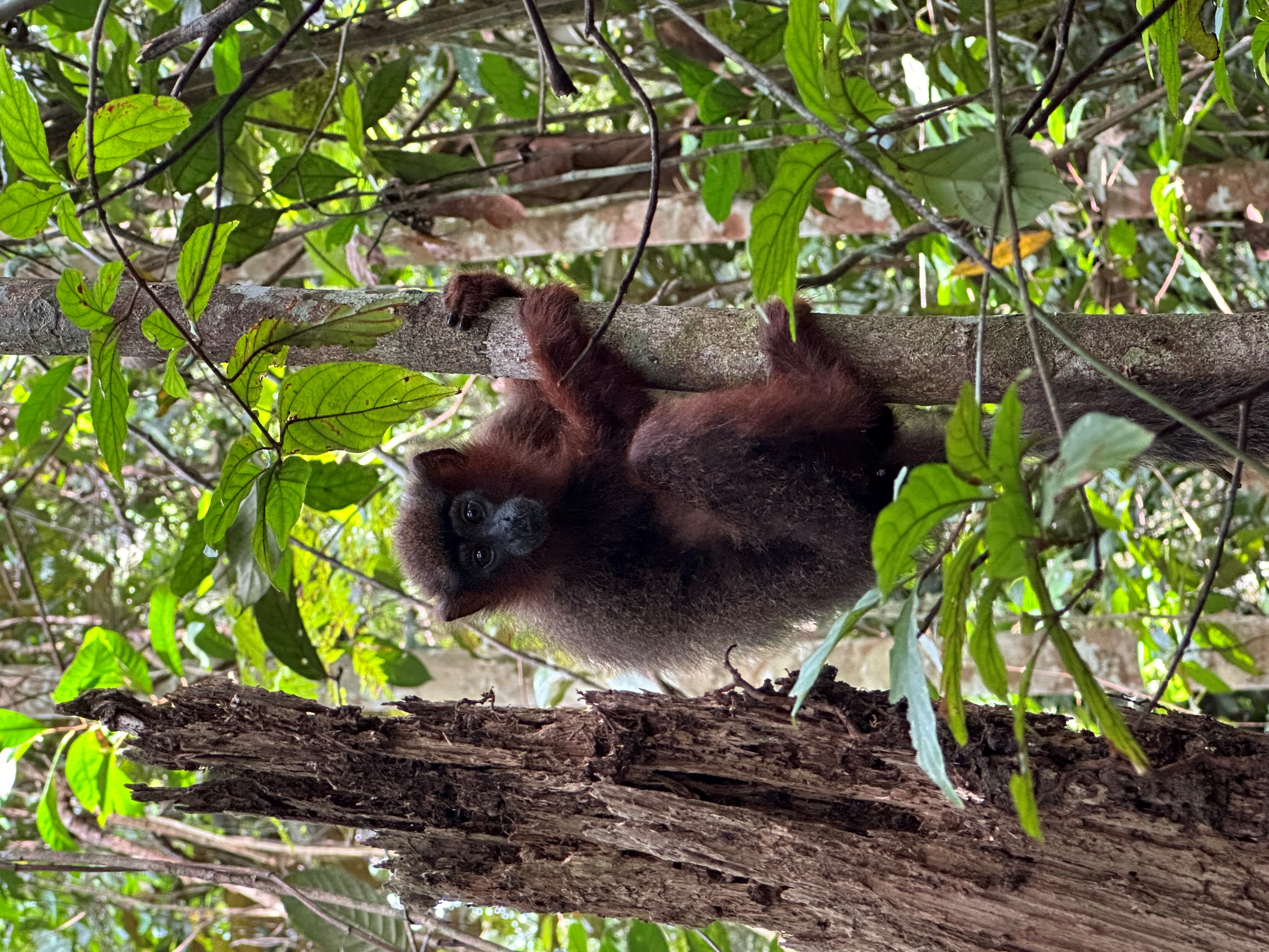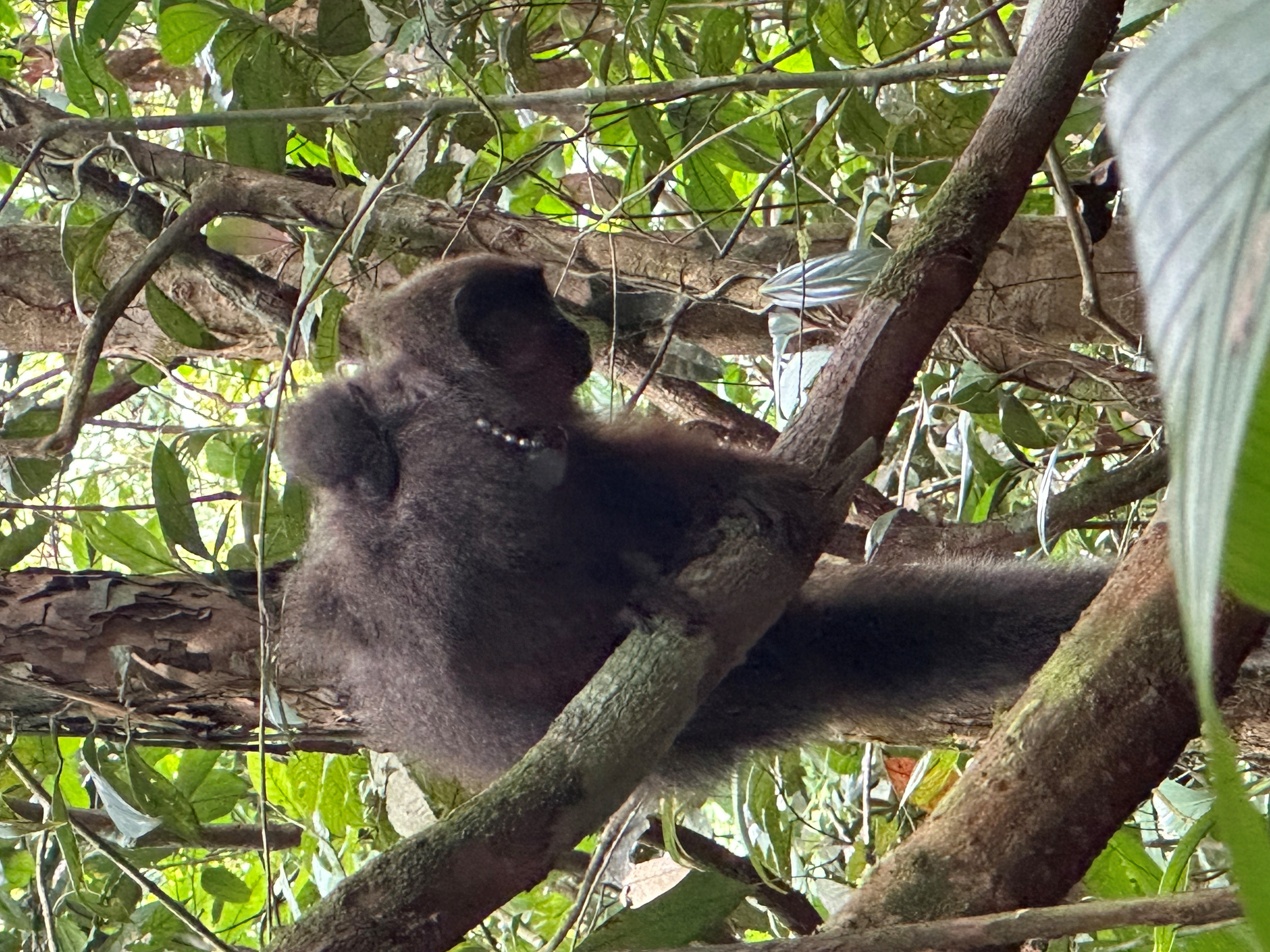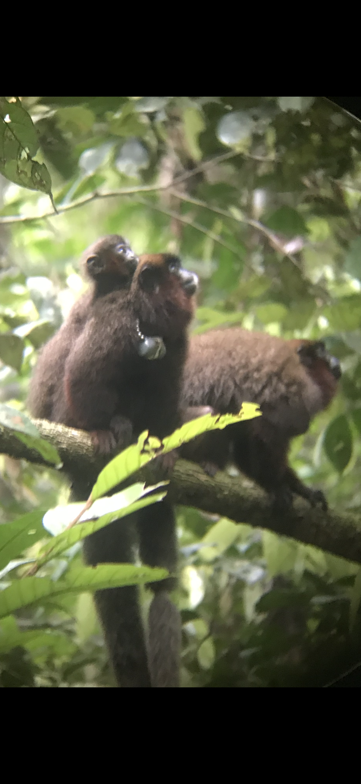 Although we endure the bugs, we’re not here for them. We’re not here for the burning equatorial sun or the drenching tropical downpours either. We’re not here for the snakes, the parrots, the peccary, the river otters, the pink dolphins, the tapirs, or the giant anteaters, although we see them. We’re not even here for the capuchin monkeys, the wooly monkeys, the squirrel monkeys, or the owl monkeys. We’re here for the titi monkeys….and not just any titi monkeys: baby titi monkeys. Since September 2022, I’ve spent 9 months following newborn titi monkeys around the jungle to watch how their moms and dads care for them and help them survive and mature into adulthood. That means that all the indignities of the sweat bees–and the distractions of the rest of the biodiversity of the tropical rainforest—don’t really weigh on my mind.
