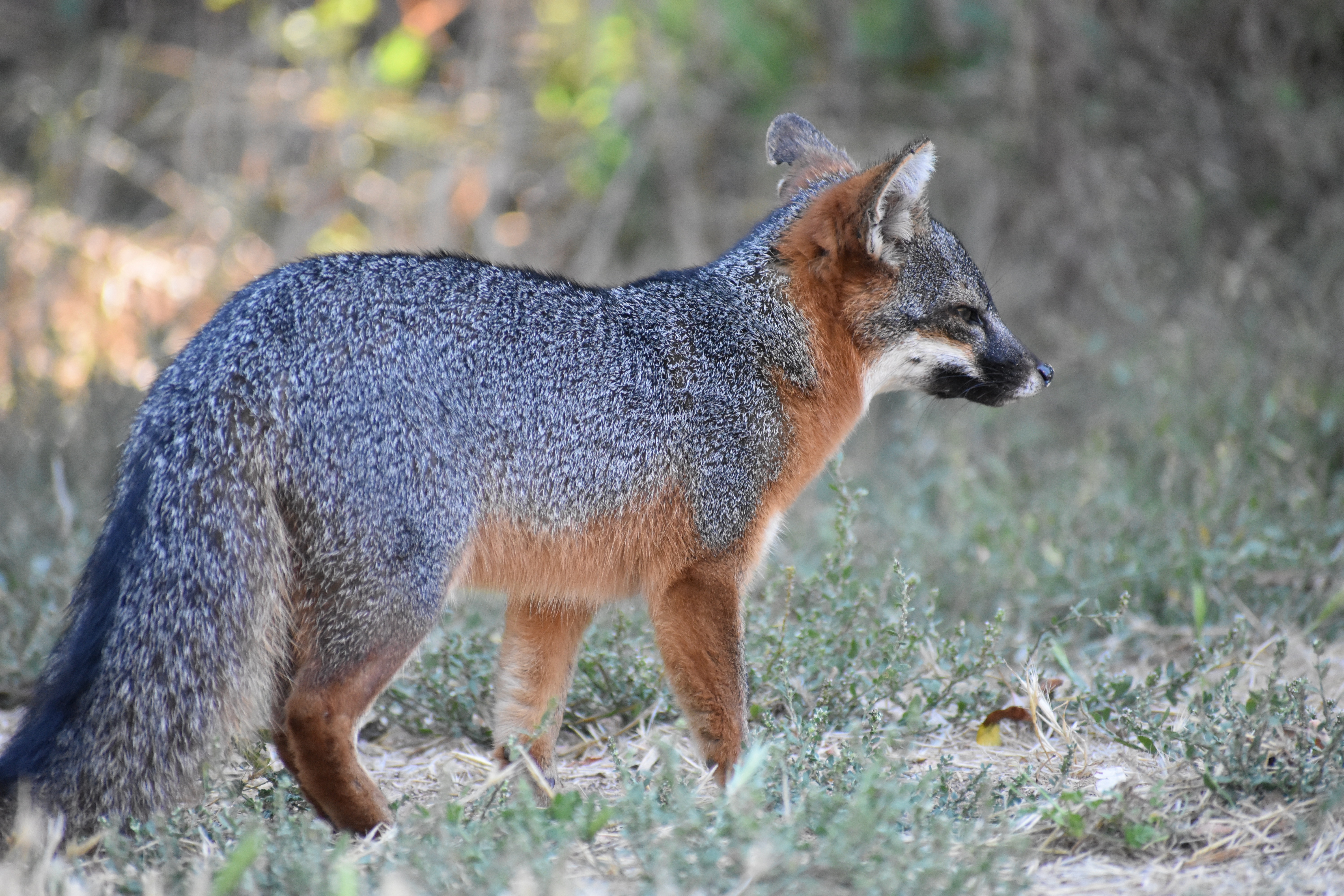 While this fox is both gray and red, it is neither a Gray Fox nor a Red Fox! Like them, it can be found in California, but only on six islands off the coast of Santa Barbara, and nowhere else in the world. This is the Island Fox (Urocyon littoralis), a species of fox endemic to (i.e., only found in) six of the eight Channel Islands of California. They are most closely related to the Gray Fox, and likely the result of a population of gray foxes reaching the islands by rafting on debris or being brought by humans some 6,000-16,000 years ago. But, unlike their nocturnal ancestors, Island Foxes have evolved to hunt throughout the day since they have no natural predators to fear. This is sort of a classic story when it comes to isolated islands, and part of what makes island ecosystems so special and sensitive. If we’ve made your appetite for further fox facts ferocious, check out their associated National Park Service web page!