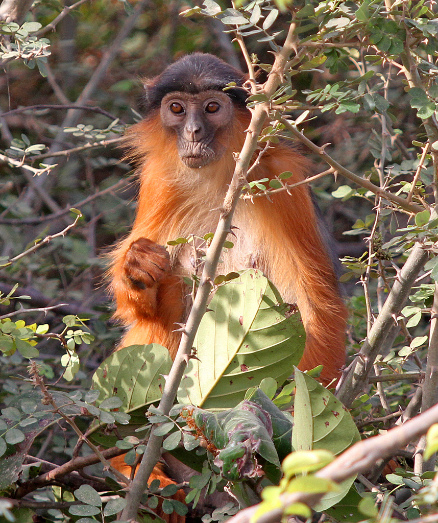 Inza Koné sought to understand the impact of commercial hunting on monkeys in the Taï National Park of Côte d’Ivoire. Primate meat is a favorite food in the area, making up 25–40% of total wild meat in restaurants in different parts of the Taï. Larger primate species are preferred as meat, which means red, white, and black colobus monkeys and mangabeys are the most impacted [2]. In collaboration with the scientist Johannes Refisch, and focusing on colobus monkeys, Koné found that harvesting of monkeys for food in the area was not sustainable for four out of the five species studied; harvesting of the fifth, the red colobus monkey (Procolobus badius), was not far off from being unsustainable [2]. These conclusions were based on harvesting data from wild meat used in restaurants in the area; the researchers compared harvested numbers to the estimated population size and growth rate of each species, and found that the current harvest far exceeded sustainable levels for these populations.