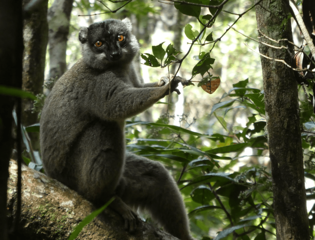The red-fronted lemur (Eulemur rufifrons), native to Madagascar, was once a subspecies of the brown lemur but is now considered a species on its own. Like many other lemur species, they are arboreal, meaning that they can often be found in trees, leaping from branch to branch. Their name comes from a unique patch of red fur around their face, which in part serves to help them identify other individuals of their own species in situations where they live near other lemur species. Researchers came to this conclusion by presenting a variety of lemur species first with a photo of a conspecific (one of their own species), then an individual from another species, and found that lemurs spent more time looking at and sniffing photos of the conspecifics, indicating some recognition. The experiment also raised some interesting questions about if sexual selection played a role in determining these facial patterns, and if the lemurs’ sniffing indicates that they use other modes of recognition in addition to just sight.