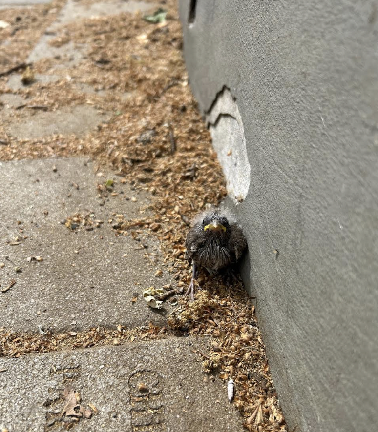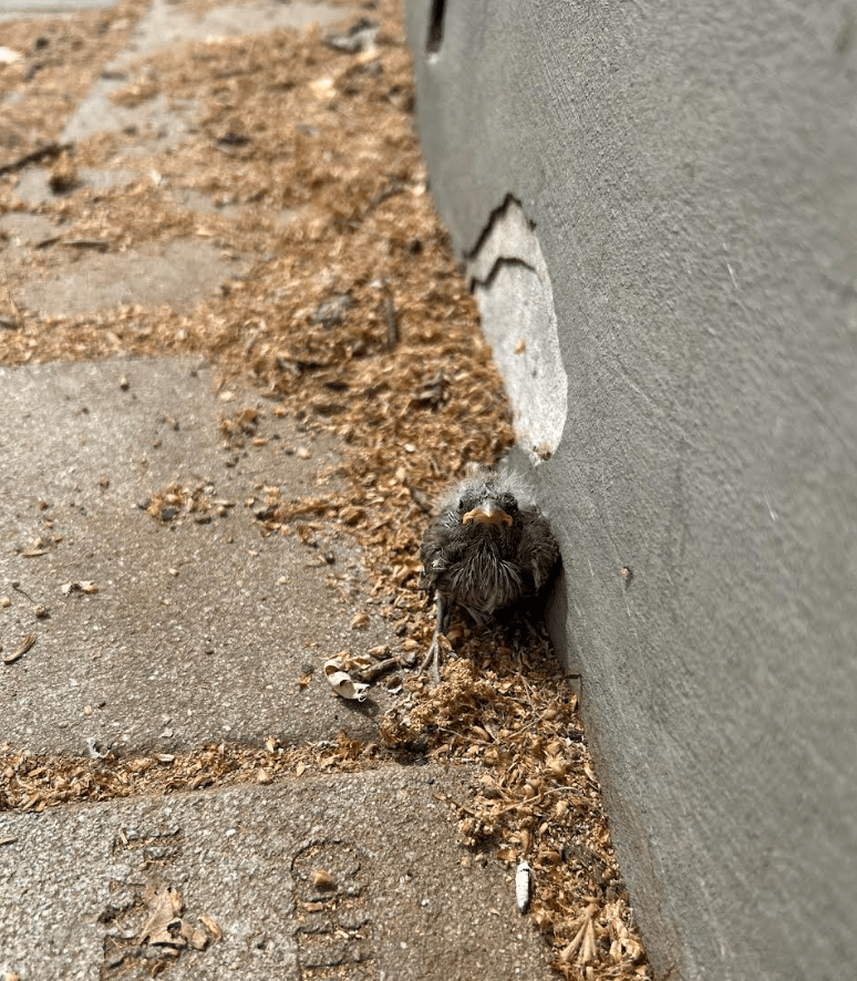 Earlier this week, I stumbled upon a small surprise in the middle of a busy downtown walkway: a baby bird, alone looking up at me, smaller than the palm of my hand. I wasn’t sure what to do at first, so I did what any cautious animal lover might do, stood nearby to protect it from being trampled by unsuspecting pedestrians while I consulted both knowledgeable bird folks and reputable sources.